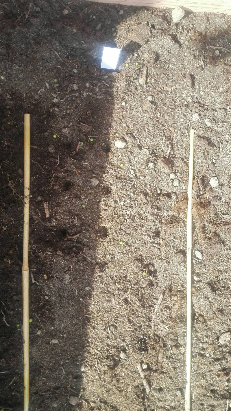 Maak met je vinger gaatjes. Doe in elk gaatje 2 zaden.