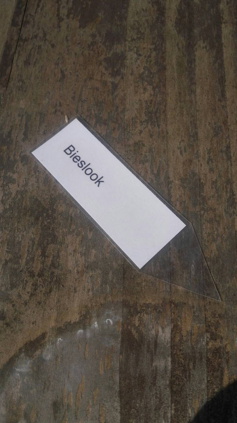 Pak een plantenlabel en steek hem op de juiste plek in de grond.