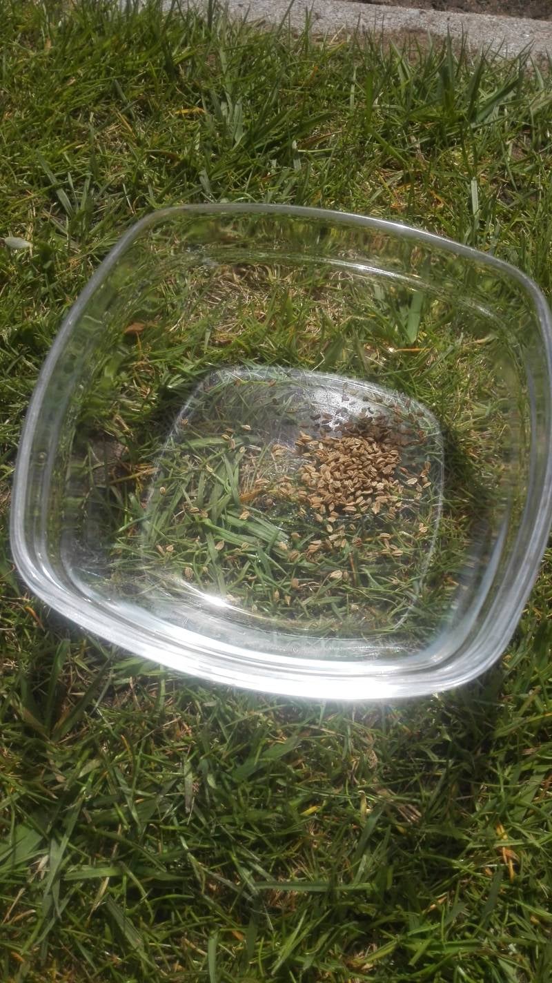 Het is handig om de zaadjes in een bakje te doen, ze zijn namelijk niet erg groot.