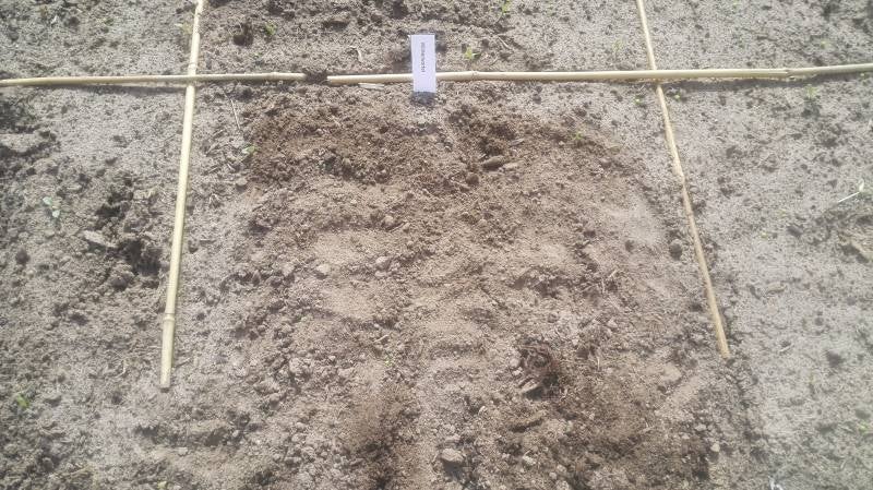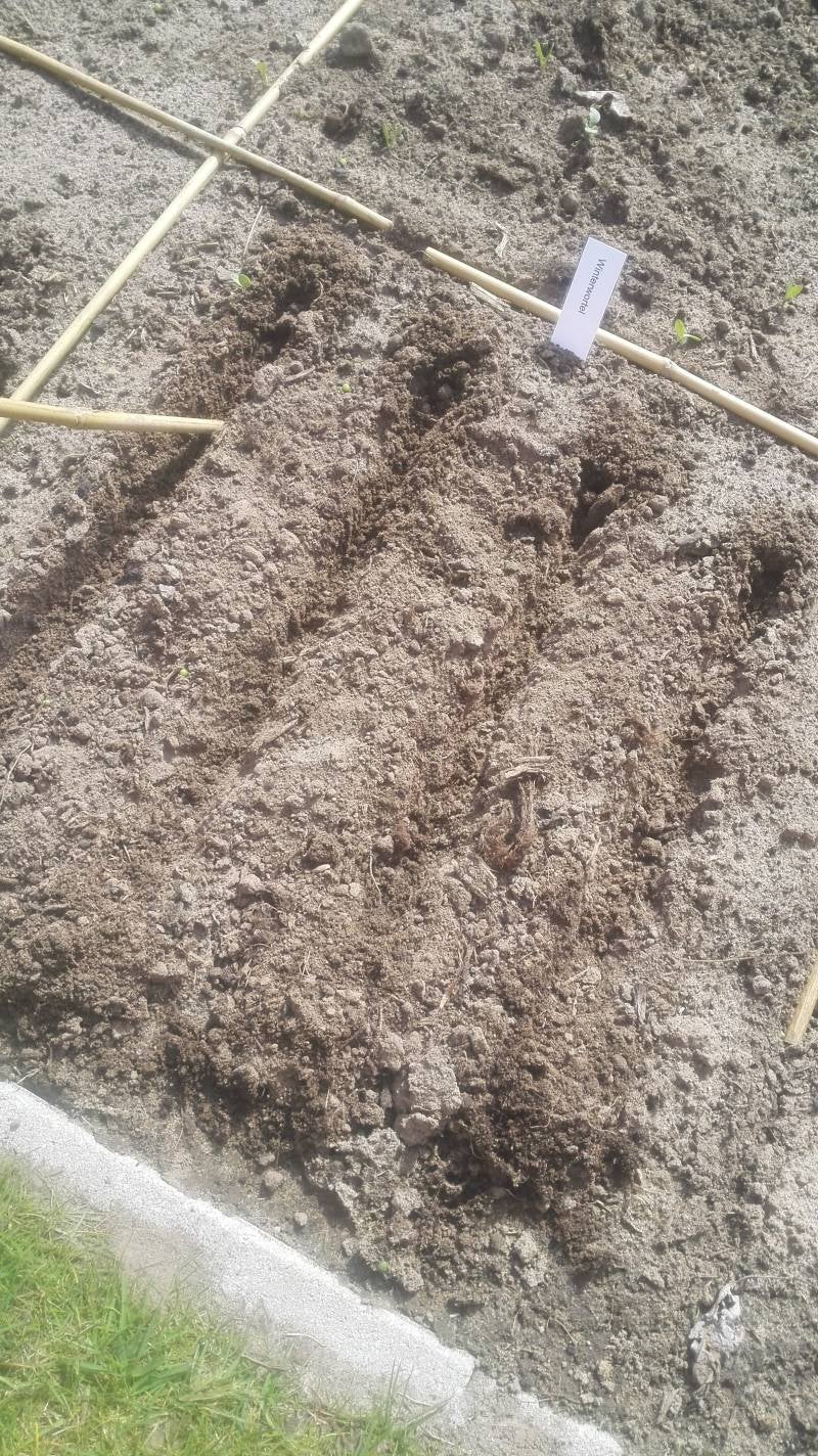 Trek met een stokje sleufjes van zo'n centimeter diep.