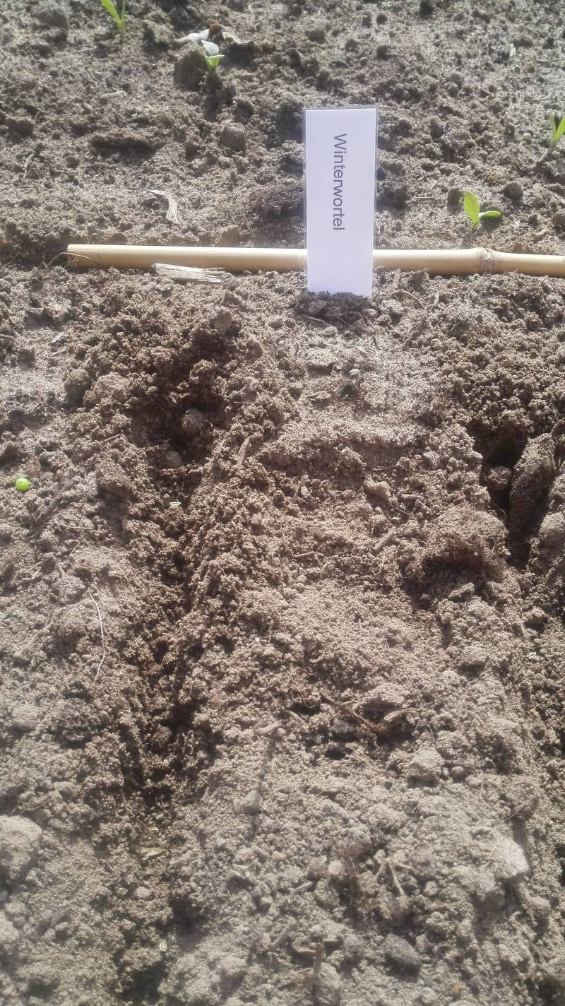 Leg de zaadjes een halve cm van elkaar af in de sleufjes. Dit ga je later nog uitdunnen.