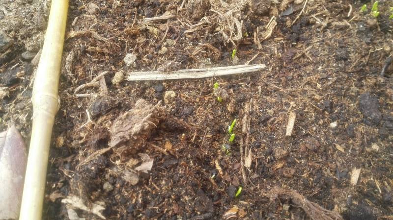 Als je goed kijkt, zie je de eerste groene lusjes uit de grond komen.